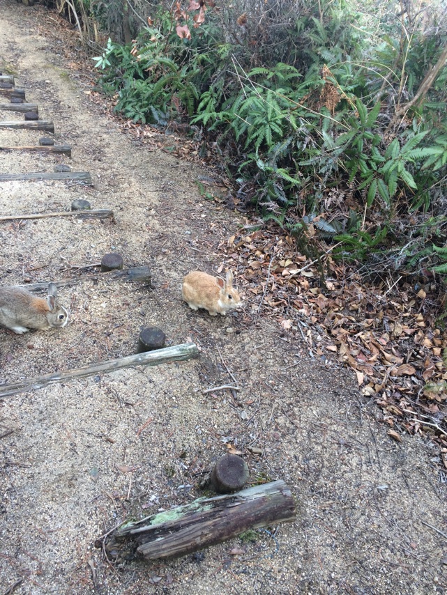 展望台までの道は結構本格的な山道だったのだけど、そんなところにもうさぎがいる。山のいたるところに棲んでるんだろうなあ。斜面を器用に登ってこちらに向かってくる。こいつはやたら慣れていて長いこと後ろをついてきていた。かわいかった。